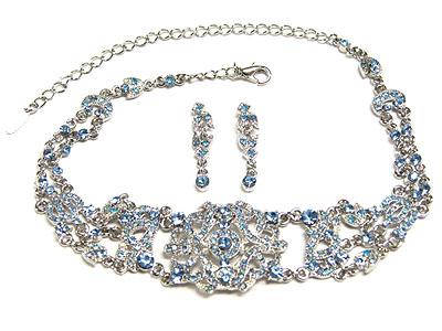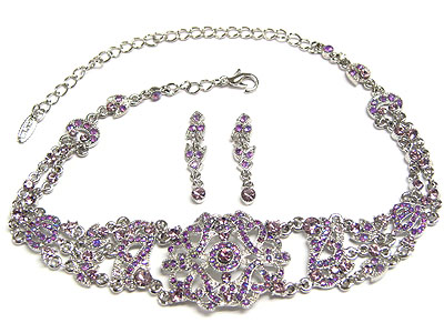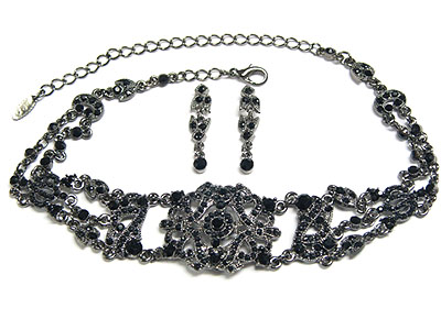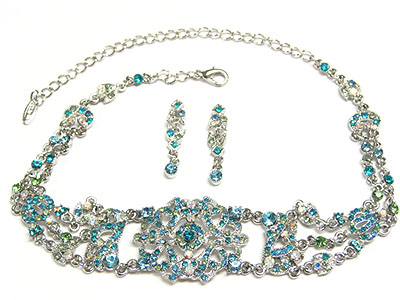 WHOLESALE VICTORIAN STYLE AUSTRIAN CRYSTAL DETAIL CASTING NECKLACE AND EARRING SET 73519