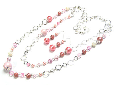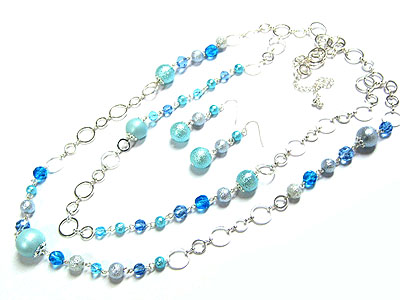 WHOLESALE TWO ROW CHAIN AND BEADS LONG NECKLACE AND EARRING SET 78710