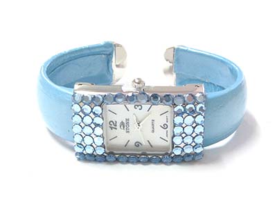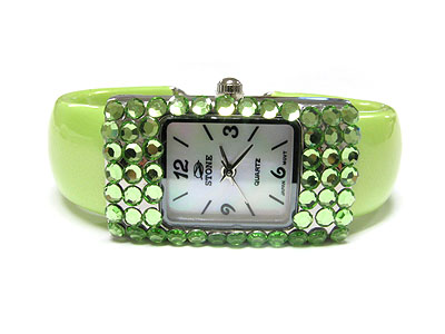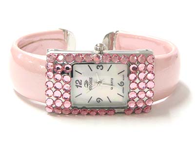 WHOLESALE SPECIAL PRICE - FLAT CRYSTAL FRAME SQUARE FACE CUFF BANGLE WATCH 79276