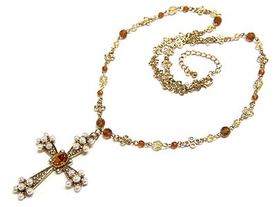 WHOLESALE CRYSTAL CROSS AND BEAD CHAIN NECKLACE 79657