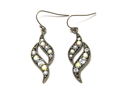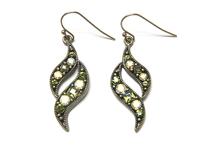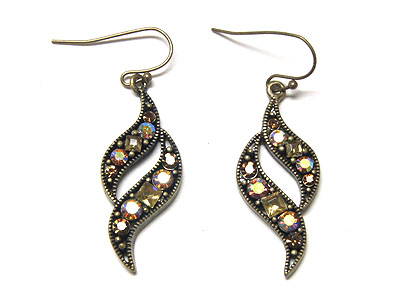 WHOLESALE CRYSTAL FEATHER SHAPE BURNISH EARRING 80051