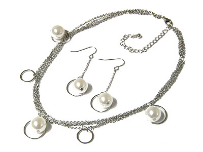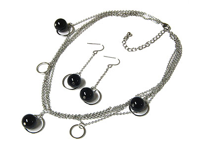 Multi line metal chain and ball drop necklace and earring set