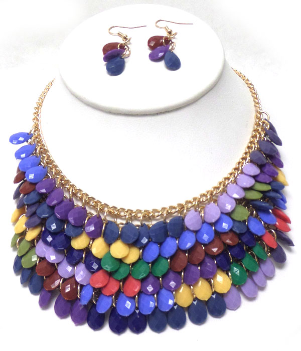 WHOLESALE MULTI FACET ACRYLIC TEARDROPS STATEMENT NECKLACE SET 405824