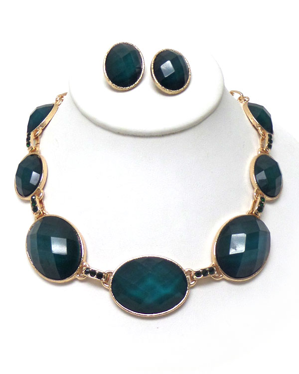 Multi facet stone and crystal link necklace set