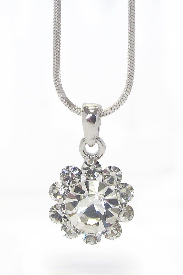 WHOLESALE MADE IN KOREA WHITEGOLD PLATING CUBIC AND CYRSTAL FLOWER PENDANT NECKLACE 410681