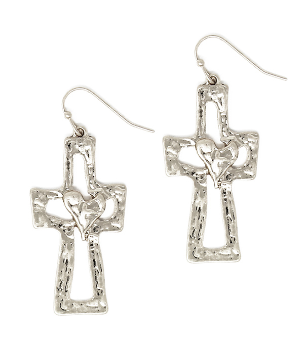 WHOLESALE TEXTURED METAL CROSS AND HEART EARRING 462746