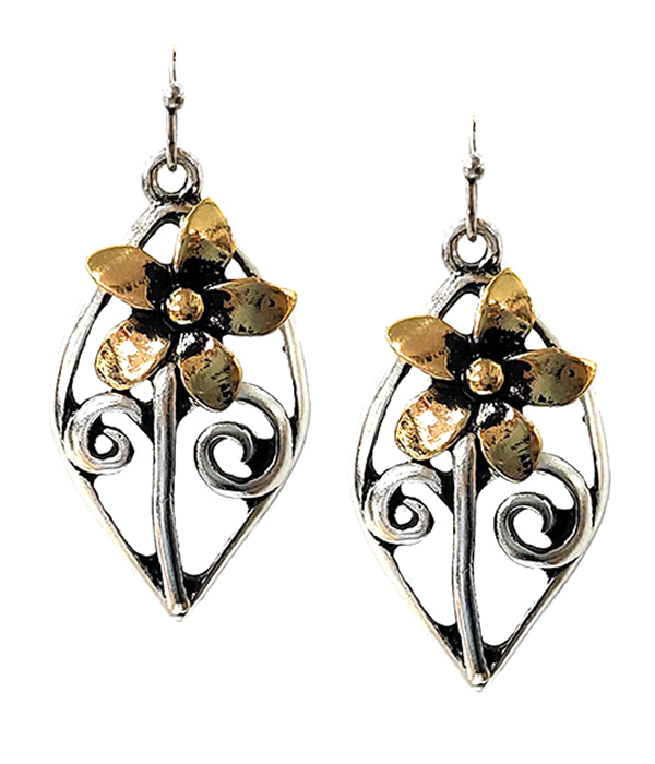 WHOLESALE PATINA FLOWER EARRING 466113
