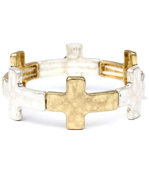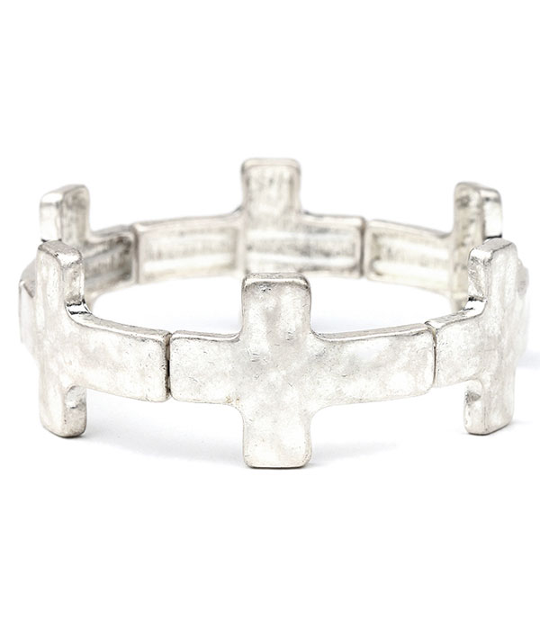 WHOLESALE HAMMERED CROSS STRETCH BRACELET 479906